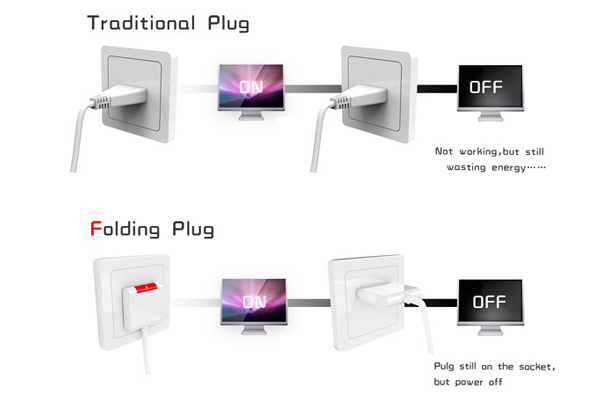 插头设计是创意产品设计的一个经久不衰的话题。这是一个创意的折叠插头,当插入墙上的电源插口时,如果要使其通电必须将它折叠成90度,所以这个折叠插头还充当了开关的功能。折叠后的厚度仅为1厘米,移动家具和打扫房间时,也不会轻易碰掉插头了。折叠插座的外观看起来也很整洁很具有功能性,结构不复杂。设计师:Huang Guanglei。