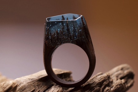 钻石、黄金、水晶,如果你想要与众不同的手饰,这套由木头、树脂、蜂蜡制作的写意戒指简直美到无以复加,尤其是在合适的光照下,树脂内的木屑就像是一个神秘森林,说不定还会有小动物出现!手工制作,每一枚都是那么奇妙梦幻!