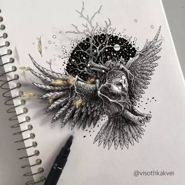 来自柬埔寨的小哥哥Visothkakvei Maine现居美国,凭借着各种繁盛美丽的花草图案,他在INS圈了超多粉丝。他的画作都是非常非常精致复杂的,看得人眼都花了,简直无法想像是怎么用手画出来的。后来他学会了用PS,作品更是变得魔幻神奇,更加美丽了。