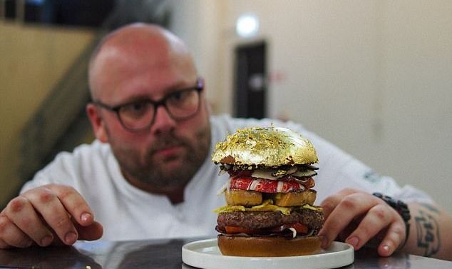 一位荷兰厨师手工制作的全球最贵金箔汉堡,材料有鹅肝、和牛、松露等高端食材,而重点是面包最上面的金箔,价值约1800 英镑。�