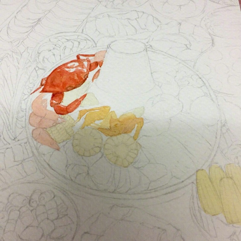 这可能就是吃货的最高境界吧,吃不到火锅就用水彩画一张,既能练手绘画能力,还能解馋,毕竟……丰盛的火锅就在面前呀,你能说它不是火锅吗。
