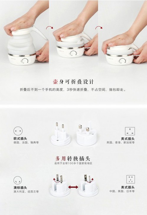 外出旅行时,对于居住宾馆里的水壶总是不放心,但自己携带的话又太重太麻烦了。没关系,现在市面上有一款创意折叠烧水壶,携带起来超级轻便,并且不会因为折叠而使得容量有损。对于经常喜欢外出的人来说,真的是非常棒的选择了。