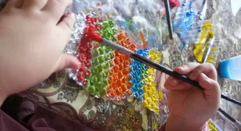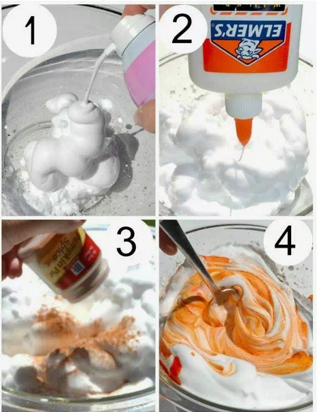 14、爸爸的剃须泡沫+手工白胶+颜料(食用色素)