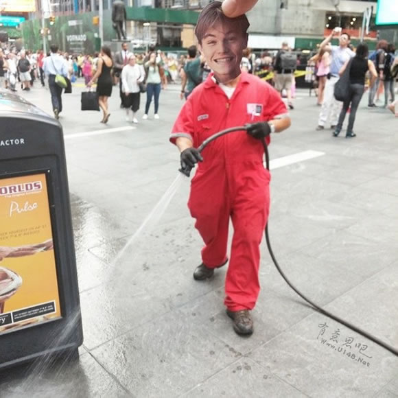 其实Strong是个媒体艺术家,来欣赏一下他的大作吧。还有啊,在用完LEO年轻时候的头像后,他把魔爪伸向了别的明星,当然,他也没放过自己,甚至把自己的大头放在女士的身上。好吧,who cares啊~~