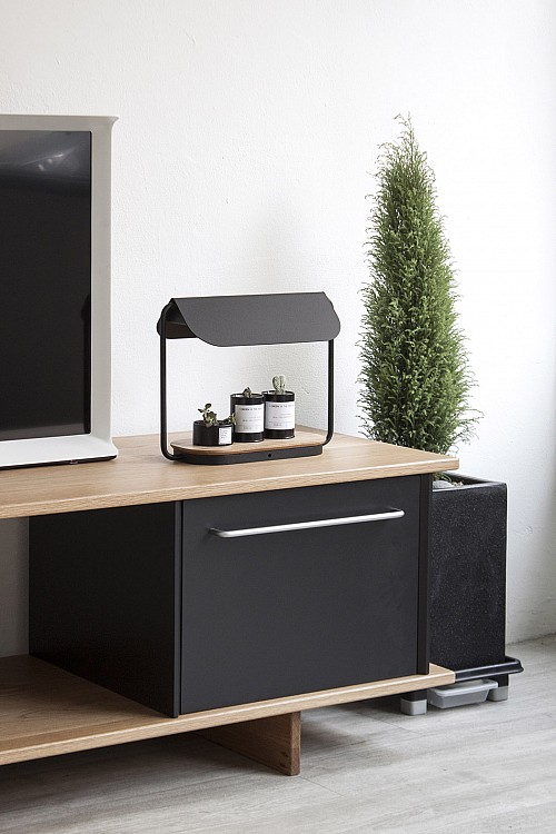 这是一款名为 Frame Lighting 的多功能台灯,看起来就像是被简化至框架的金字塔式小屋,每一个部分都相当实用:“地板”上能够堆放一些小物,“屋顶”则刚好可以用来搁置阅读中的书籍。