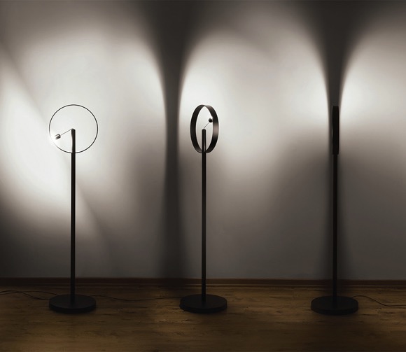 Enso落地灯有着十分别致的照明方式,它的圆圈灯罩内置磁铁,而那个可以360°活动的灯泡可以被个个角度隔空吸附,因此你看到的就是被一股神秘力量吸附的悬空灯泡啦。