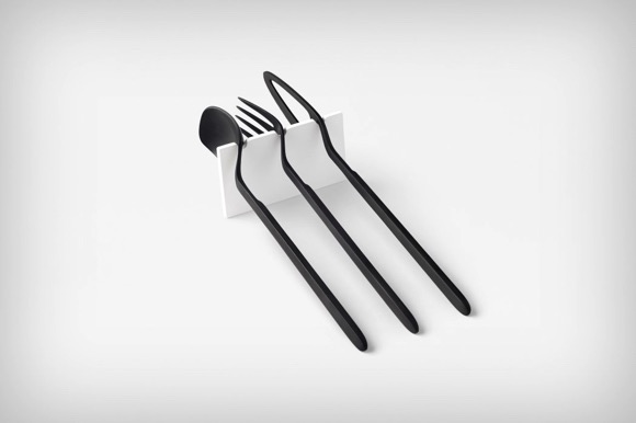 Nendo为比利时的一家家居品牌Valerie Objects设计的这组刀叉餐具形式上做到极简,但同时也增加了更方便放置的易用性功能,使得刀叉巧妙结合器皿的边缘,可以方便地搁在碗上。