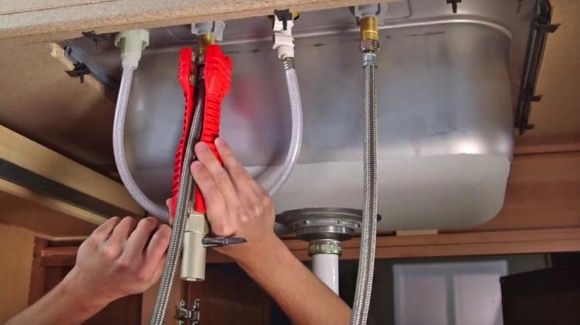 厨房水池下方最难弄的就属管道连接了,想要把它们拧的紧紧的,除了依靠天生的手劲,也可以借助这款扳手,它能套在管道外侧,直接将旋转力道施加在螺母上,不管多么隐蔽,它都能让你DIY维修得心应手。