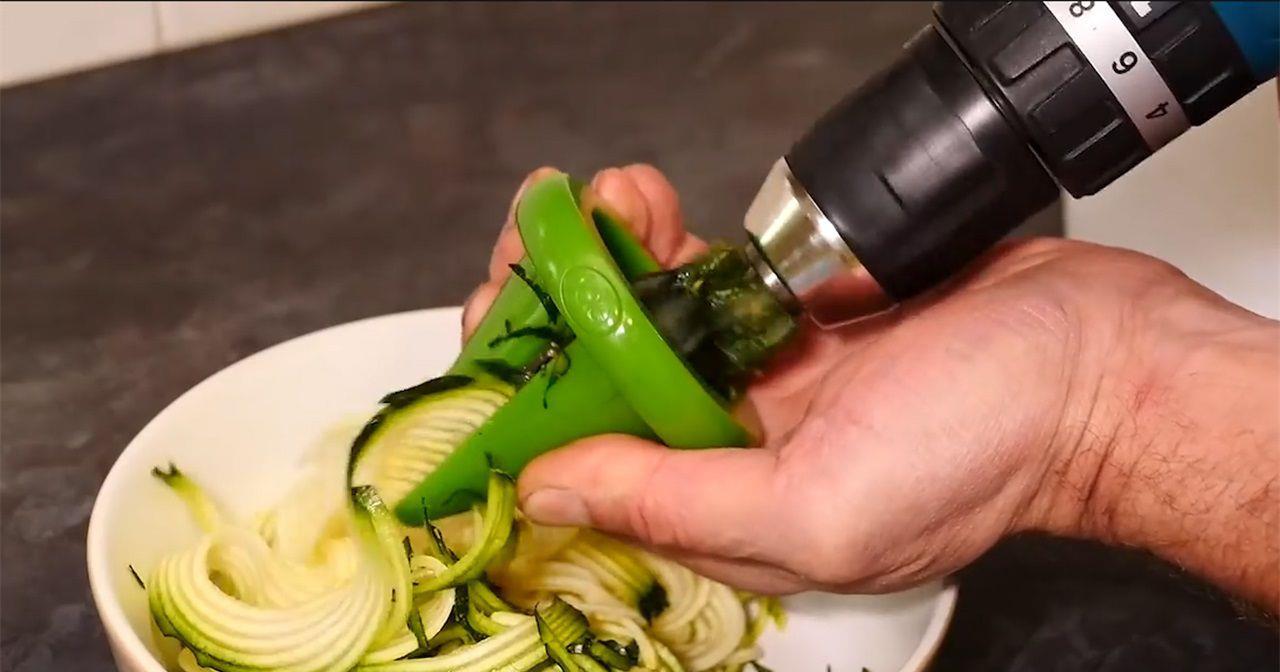有一位老外发明了一个比较特别的切丝器,可谓是动力强劲哦!