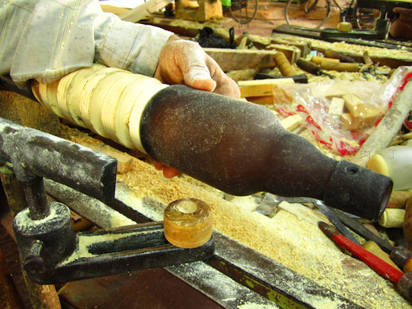 此外设计师还联手印度当地的手工艺者,对不同造型的酒瓶进行了深度加工和改造,通过虫胶将切削好的木制零件固定到瓶子上,做出更加憨态可掬的动物台灯。