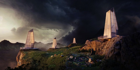 Bartosz 为冰岛“托尔谷”(Thórsmörk,Valley of Thor)建造的这些“风帆”形的房子,用温暖的火焰,与木材和帆布,将这种空旷反差到了极致。但这些小屋的本质是一栋栋挺简单的木头小屋,都有着积木框子一般的木头骨架,外面蒙上诸如帆布一样的防风层,中间则是一根直通屋顶的烟囱,将暖炉产生的烟与毒气排放在屋外。