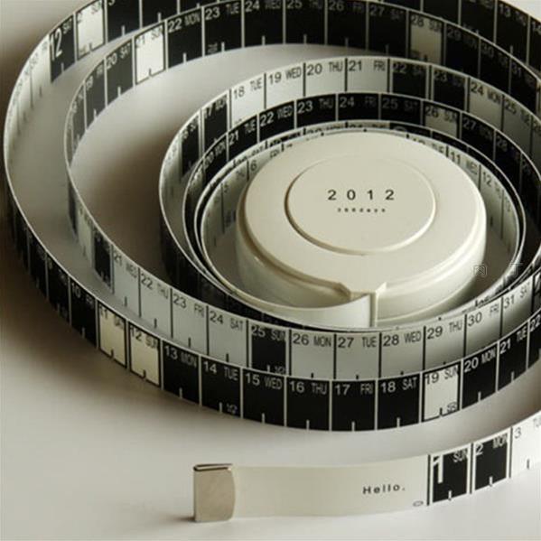 日本设计师 Hiroyuki Miyake 设计了一款卷尺样式的日历,整体是一年,每一厘米是一天,当然,上面卷尺的尺寸仍旧是精确的,可以正常使用。