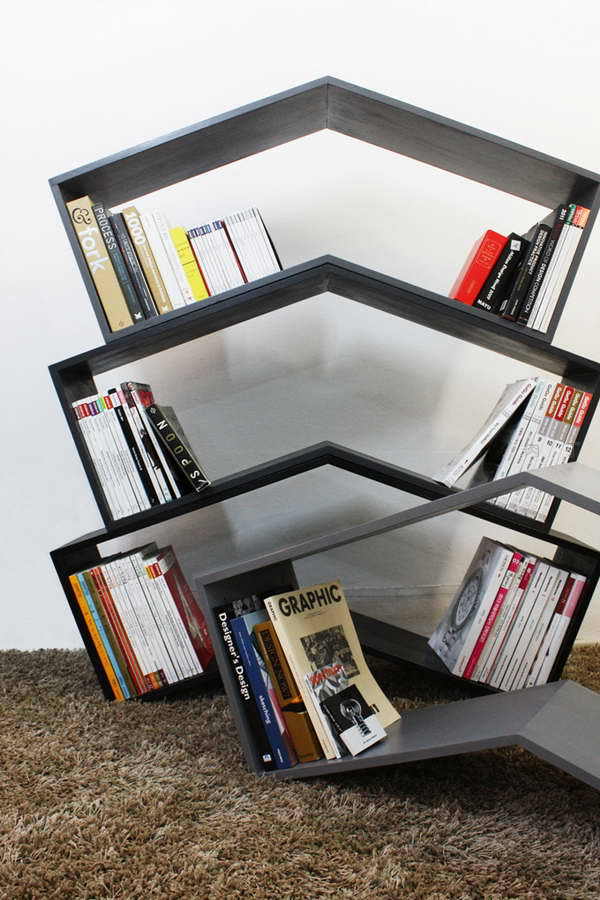 并且这组书柜还有一个创意之处就是可以有效的解决书籍会倒的问题。有一个倾斜的角度来让书本可以很好的被安放。