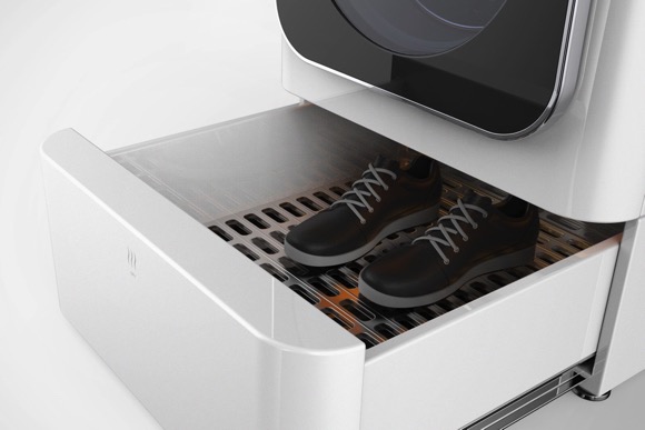 洗衣机现在已经成了很多人家中的必备电器,解决了洗衣难题,但刷鞋子,还是一件耗时耗力的事儿。设计师 Ji Eun Oh 最近推出了一款名为 3 Space 的概念洗衣机,允许你将运动鞋扔进洗衣机,帮你刷鞋。3 Space 允许同时清洗衣物和鞋子,衣服放在上面的滚筒里,鞋子放在下面的抽屉,两者可以同步清洗,不必担心水会相互污染。