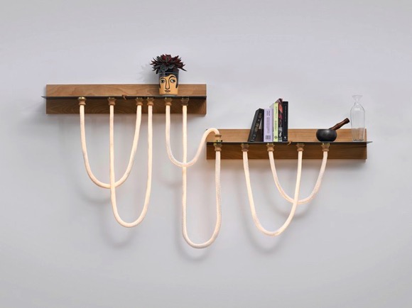Studioknob设计了一款趣味横生的绳子灯,虽然都算是通过绳子控制开启关闭,但操作方式完全不同,你需要把绳子的两端“吸”到正负极的金属板上,借此通电,交互方式很是独特。