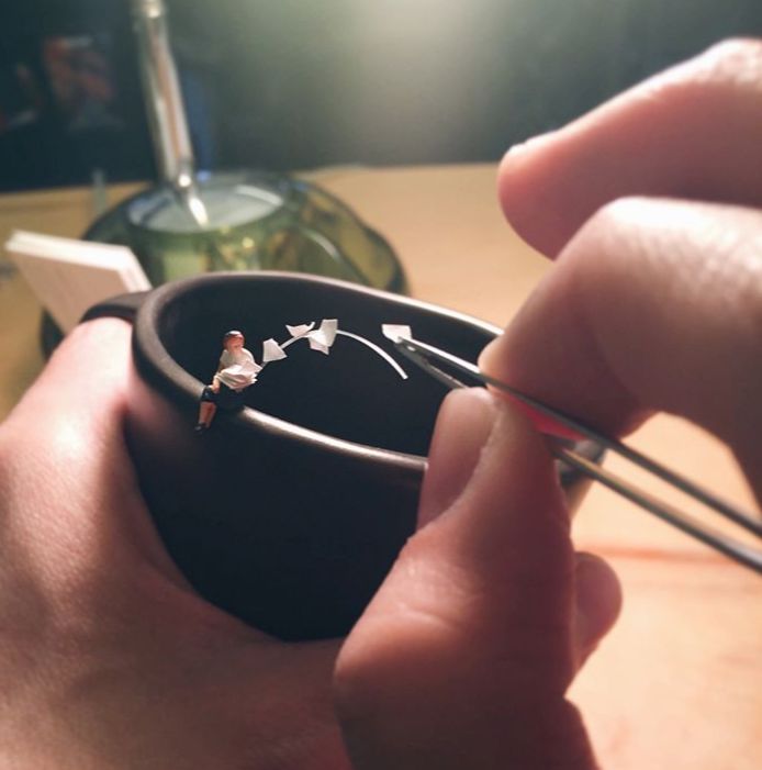 每一个场景都是他手工制作出来的,小哥不是什么模型大师,他的职业是广告设计,一些作品还是上班期间“偷懒”做出来的。他制作这些场景的原因竟是为了释放工作上的压力。