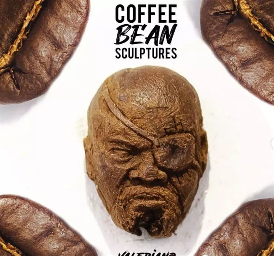 不但是西瓜,就连一颗小小的咖啡豆也雕出经验的艺术作品。