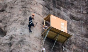 开个小卖店最讲究的是地理位置,最佳是开在人流量大的中心地段上,但是有一家小卖店却开在悬崖的山腰上,这点真的会有人来光顾吗? 这家悬崖小卖店位于湖南...