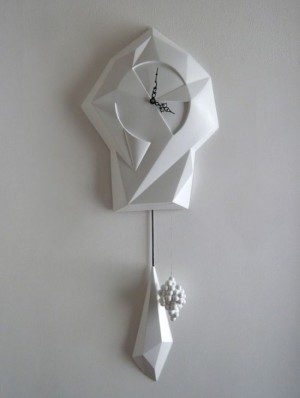 计师Stefan Hepner设计的这款名为 CuCoo Clock 的壁挂摆钟,很美。它由注塑树脂制成。其多个棱面、一体化成型,其首饰吊坠下摆,非常特别。