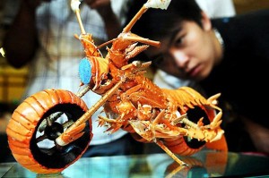 台湾大厨黄明博利用龙虾本身吃掉剩下的外壳,巧手打造了一系列的迷你摩托车模型,之前在福建省举行的视频研究会上进行展示,栩栩如生的模型上甚至可以清楚的...